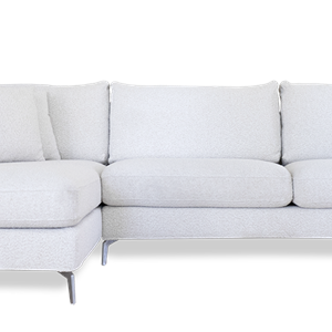 Divano moderno angolare con struttura in legno, seduta a cinghie elastiche con imbottitura in poliuretano indeformabile rivestito in fibra, l'imbottitura degli schienali può essere realizzata in diverse versioni a seconda delle vostre esigenze.